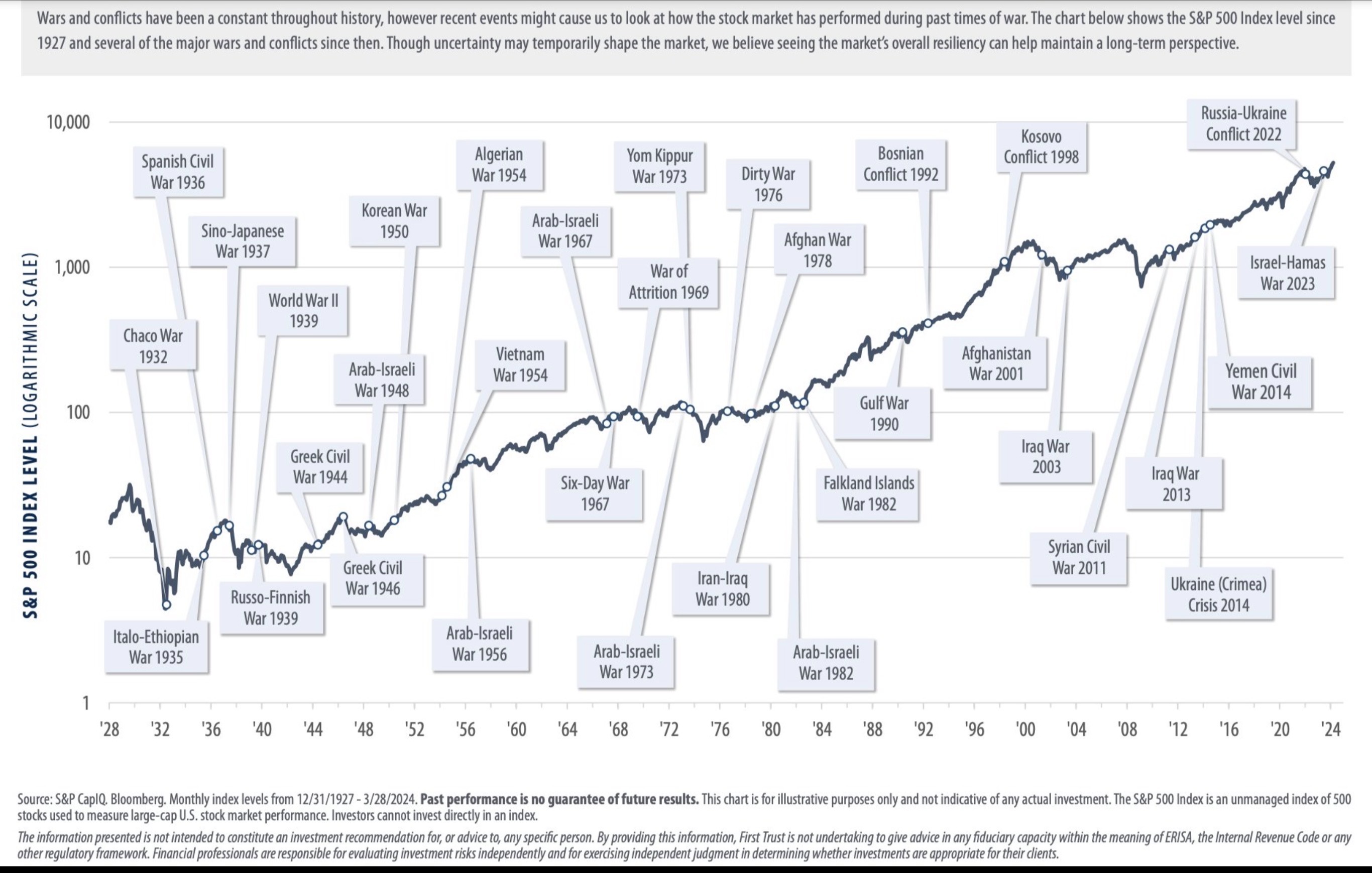 Mike: We have a serious topic today that’s led to a lot of conversations with both advisors and clients. War has been in the headlines and on people's minds over the last couple weeks. Ross and I want to talk to you about the impact that wars have on stocks and investing and money. We’ll leave aside the historical, political, and social impacts of war – that's beyond our purview. We really want to focus on your money and the stock market. So Ross, I'm going to kick it over to you to start.