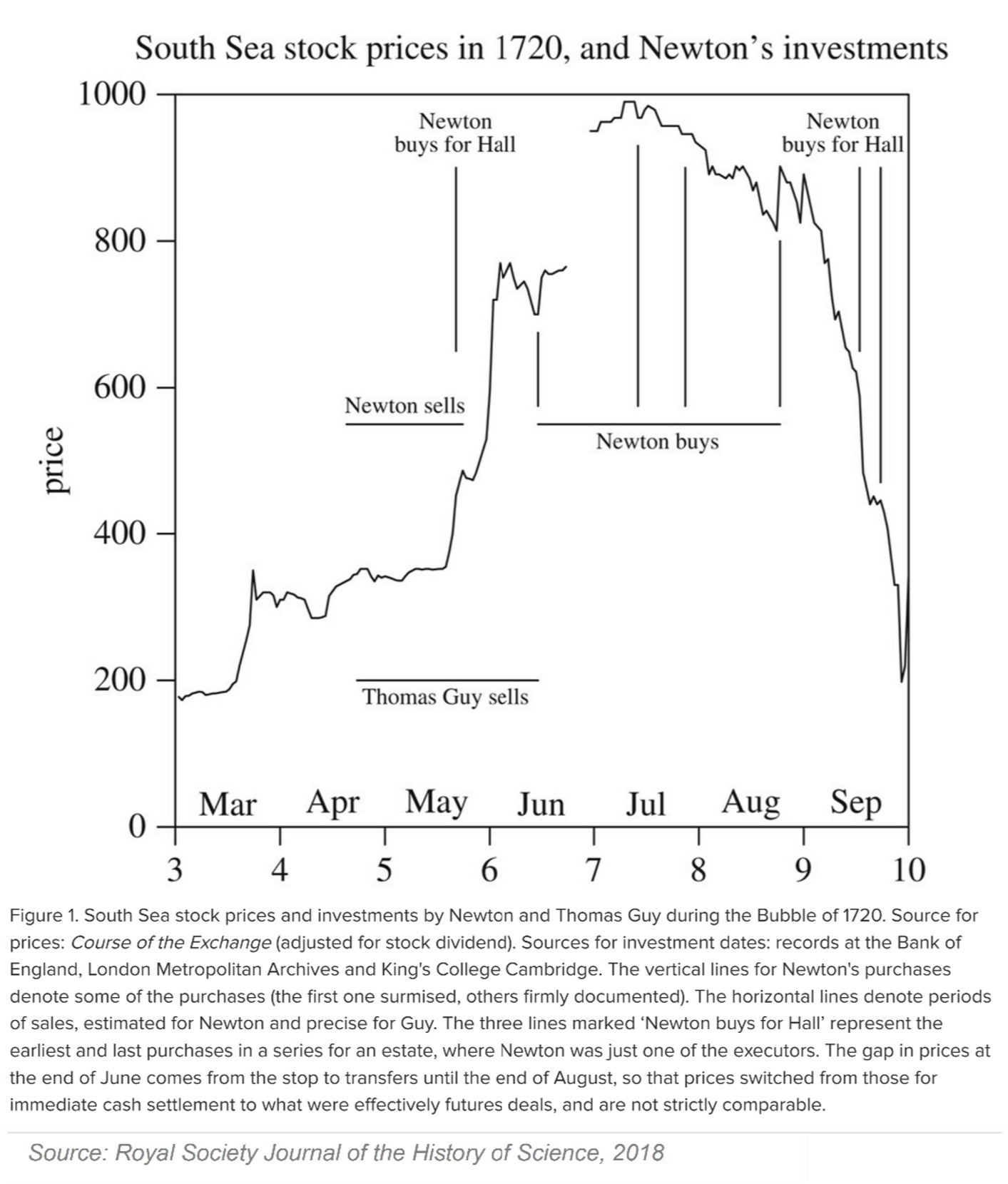 The insidious thing about FOMO is that not even the most intelligent are immune. Sir Isaac Newton, considered one of the smartest people to ever live, absolutely lost his shirt in one of the first asset bubbles in modern history, the South Sea Company in 1720. Jason Zweig wrote about it in an updated version of Benjamin Graham’s The Intelligent Investor. As the story goes, Newton actually dumped his shares early, pocketing a tidy profit, but just months later, “swept up in the wild enthusiasm of the market, Newton jumped back in at a much higher price and lost £20,000 (more than $3 million in today’s money). For the rest of his life, he forbade anyone to speak the words ‘South Sea’ in his presence.” Of course, we are luckier for Newton’s experience because it birthed one of the great quotes about investing, when Newton recapped the bubble by quipping: “I can calculate the movement of stars, but not the madness of men.”