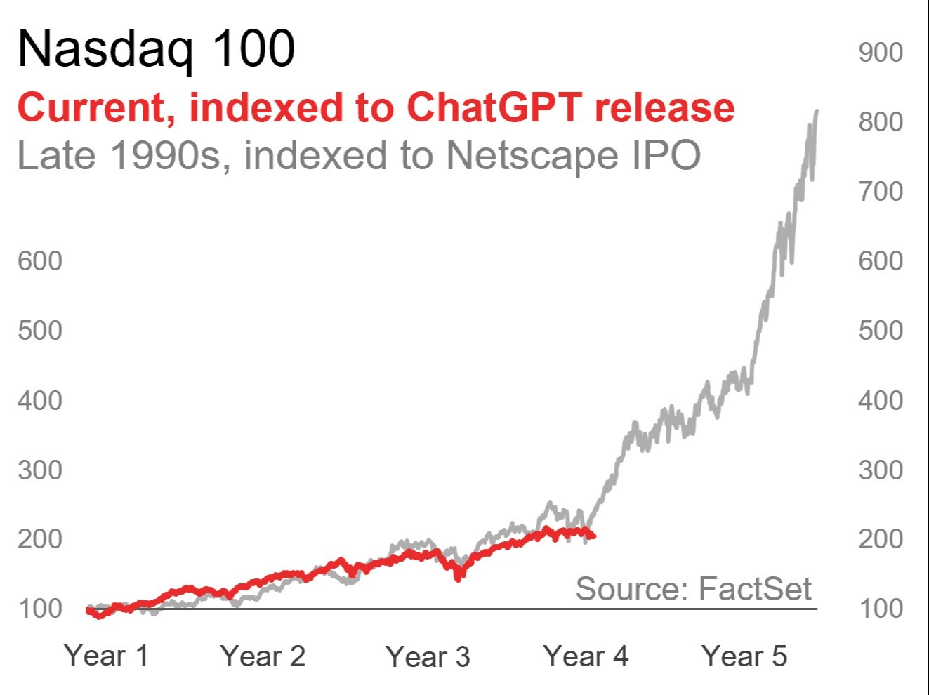 One of the most common questions I get is, “Are we in an AI bubble?” My answer has been – and still is – “no” for two main reasons. The first is price. Asset bubbles typically feature a parabolic price move in the underlying asset, often culminating in a “blow-off top” (when price goes almost vertical in a short period). The chart to the right helps clarify the difference between a bull market and a bubble. Second is sentiment. Bubbles are emotionally-driven, with prices increasingly dictated by euphoric sentiment and fear of missing out (rather than by the fundamentals). On that front, I’m reassured by the scrutiny of Big Tech's spending plans and funding sources (debt vs. cash). It’s a good sign that investors still care about cash flows and return on capital.
