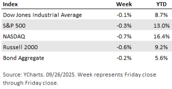 The Personal Consumption Expenditures (PCE) Price Index, the Federal Reserve’s preferred gauge of inflation, rose 0.3% month-over-month and 2.7% year-over-year in August. The core PCE index, which excludes food and energy, increased 0.2% month-over-month and 2.9% compared to a year ago.5 Both readings came in broadly in line with expectations but remained above the Federal Reserve’s target of 2%. While inflation has moderated from prior highs, the data indicates that pricing pressures persist.