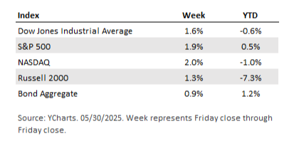Tariff announcements continue to dominate the headlines. As a positive for the markets, on May 25th the administration delayed 50% tariffs on European Union imports until July 9th. The tariffs were originally set to take effect on June 1st, however, Trump agreed to an extension after the European Commission President Ursula von der Leyden requested more time for negotiation.3