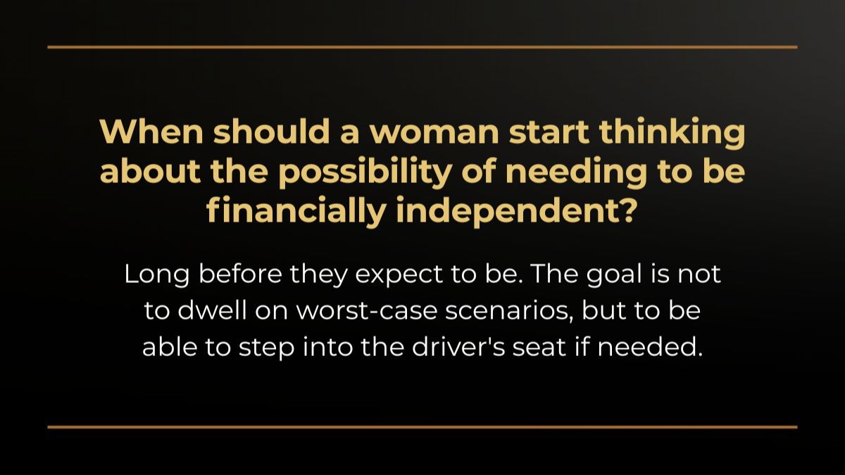 For women already managing a portfolio or expecting to inherit one, this trend is not abstract. It raises important questions for both single women and married couples looking to the future. Here are just a few: