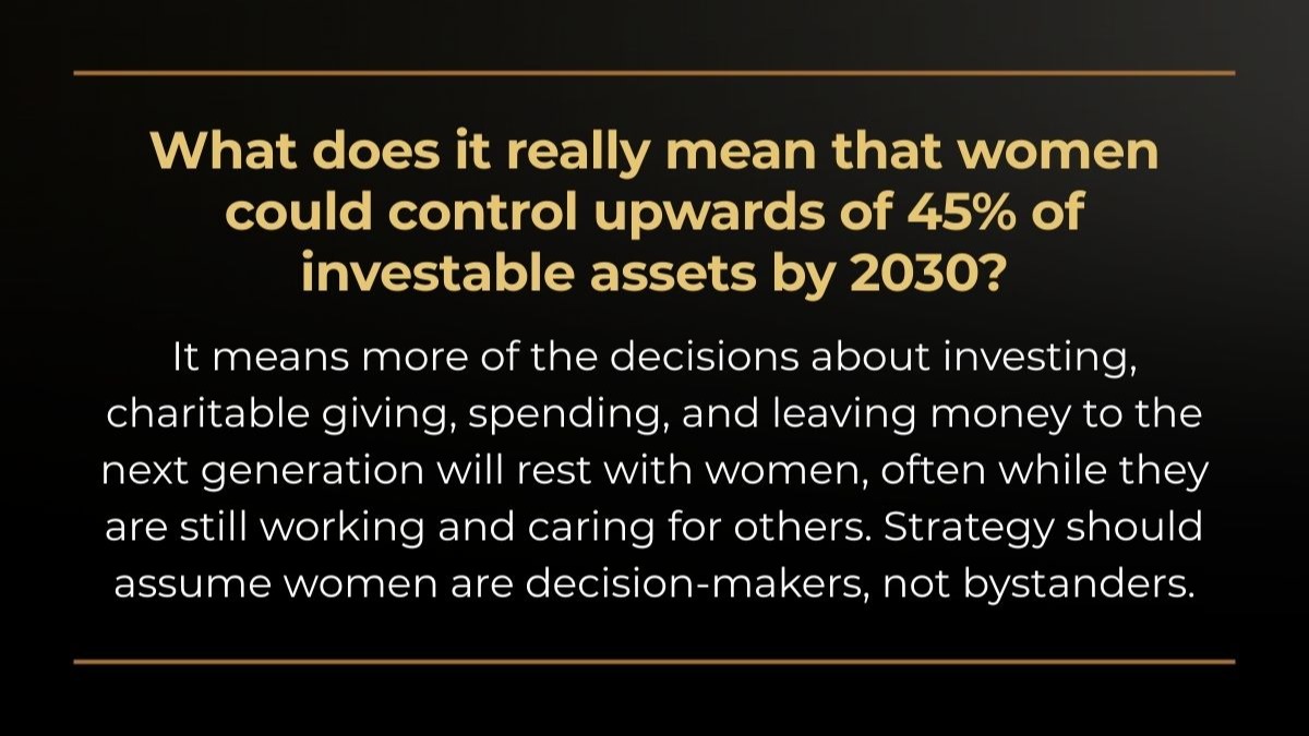 Simply put, in today’s world, women are increasingly the ones earning, inheriting, and ultimately directing family wealth. And that shows no signs of changing.