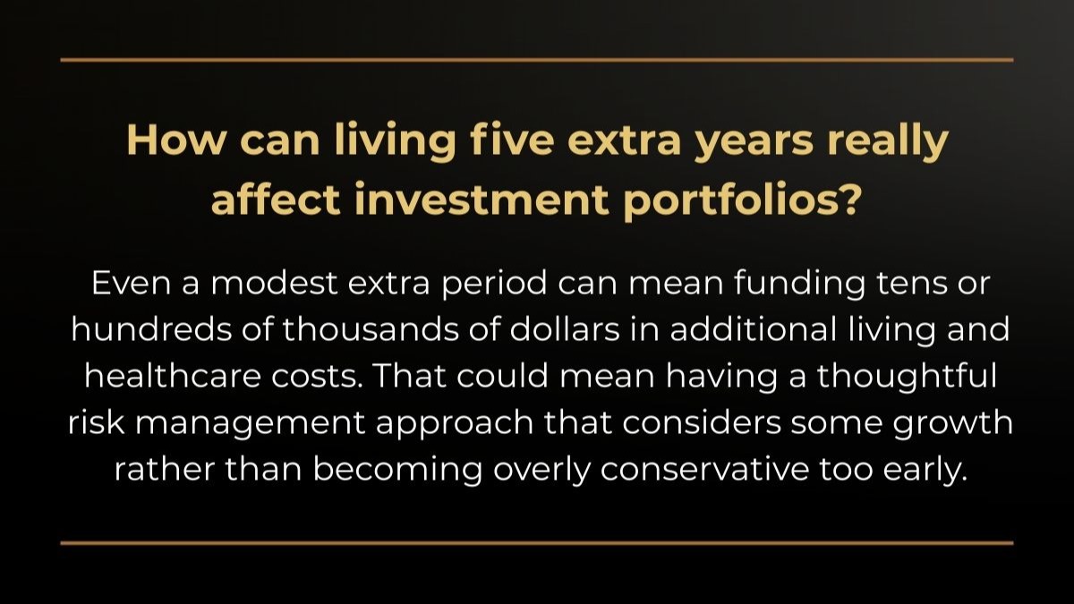While longevity is good news, it has clear financial implications, especially for women. Retirement and investment strategy needs to support: