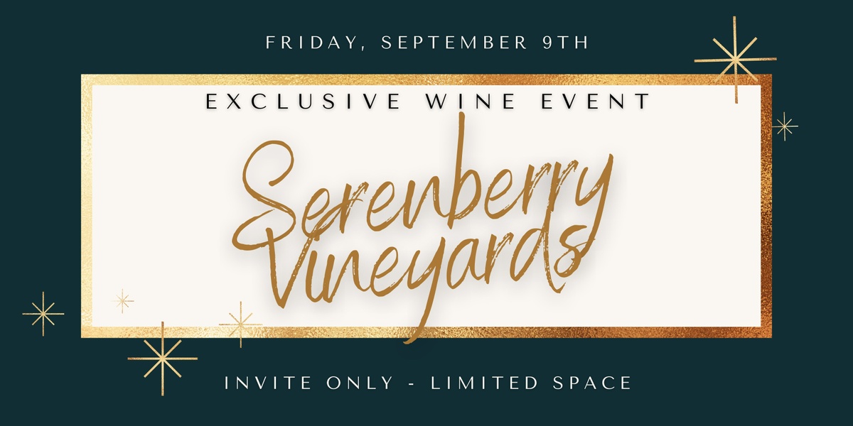 You are invited to an exclusive wine tasting event on Friday, September 9th at Serenberry Vineyards. Our group will arrive at 1 PM and have access to: